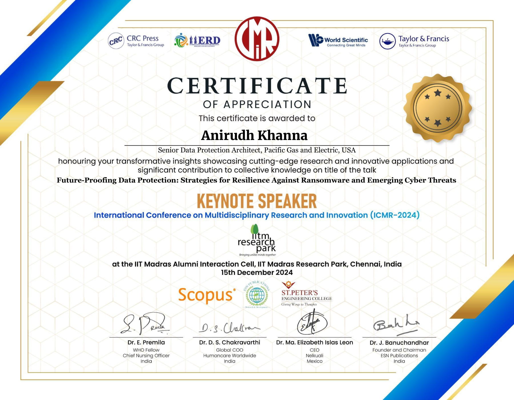 I am a distinguished technical and thought leader in backup and recovery, disaster recovery, and ransomware attack recovery. With over 17 years of experience, I have successfully led teams responsible for safeguarding data and ensuring business continuity for several Fortune 500 companies. As a prolific author, I have published over 20 research papers in reputed journals and presented at more than seven international conferences. My deep expertise and commitment to advancing the field of data protection have been recognized with numerous prestigious awards, including Stevie, Globee, and Titan Awards for technological excellence. For the past seven years, I have played a pivotal role in providing business continuity services for critical infrastructure at one of the largest utility companies in the USA. My dedication to maintaining essential services and operational integrity is reflected in my work. As a recognized leader, I am a Senior Member of IEEE and I regularly review research papers for highly reputed journals and conferences. My extensive body of work, including articles and research papers, highlights my capabilities as a visionary in data protection and cyber recovery, cementing my status as a respected authority in the industry.