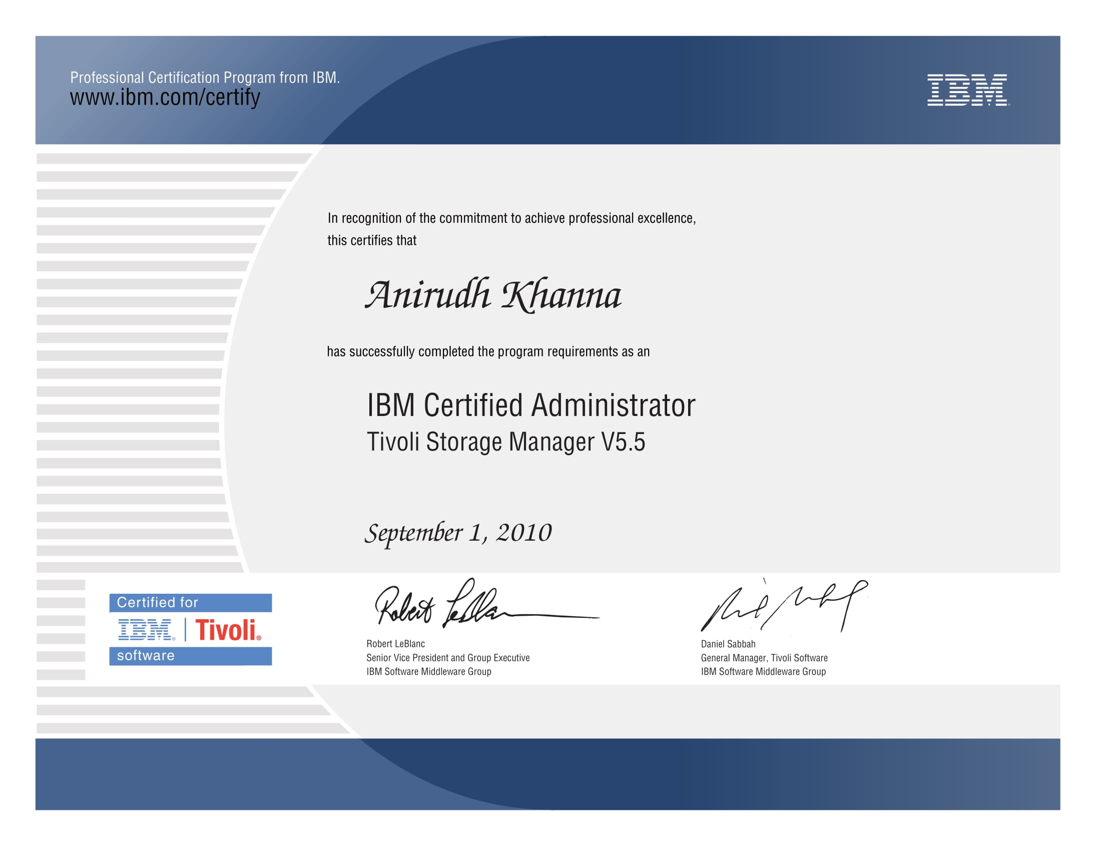 - IBM Certified Administrator Tivoli Storage Manager V5.5