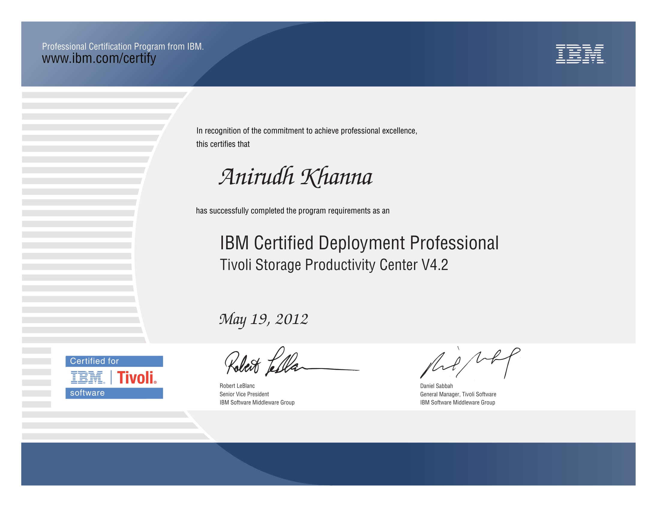 - IBM Certified Deployment Professional – Tivoli Storage Productivity Center V4.2