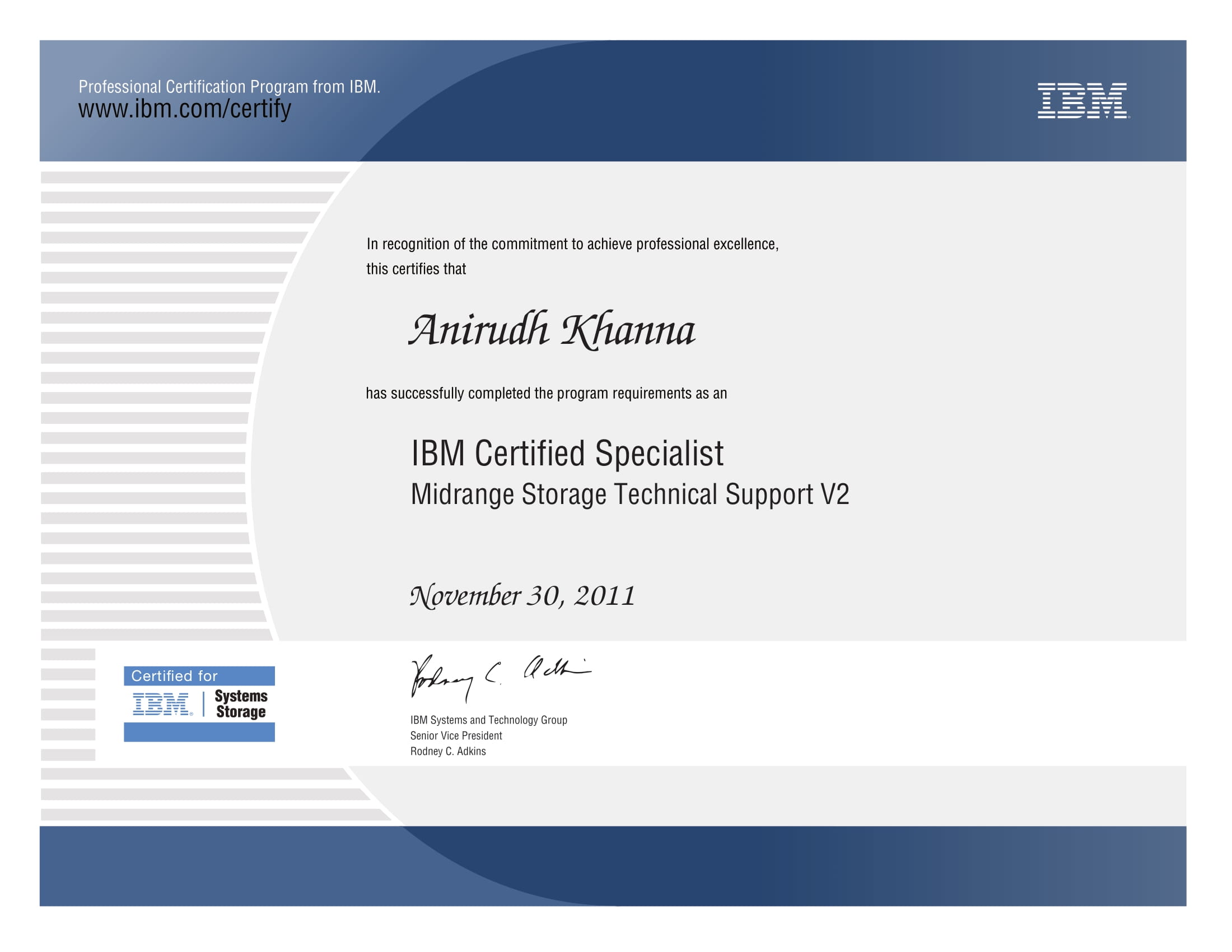 - IBM Certified Specialist – Midrange Storage Technical Support V2