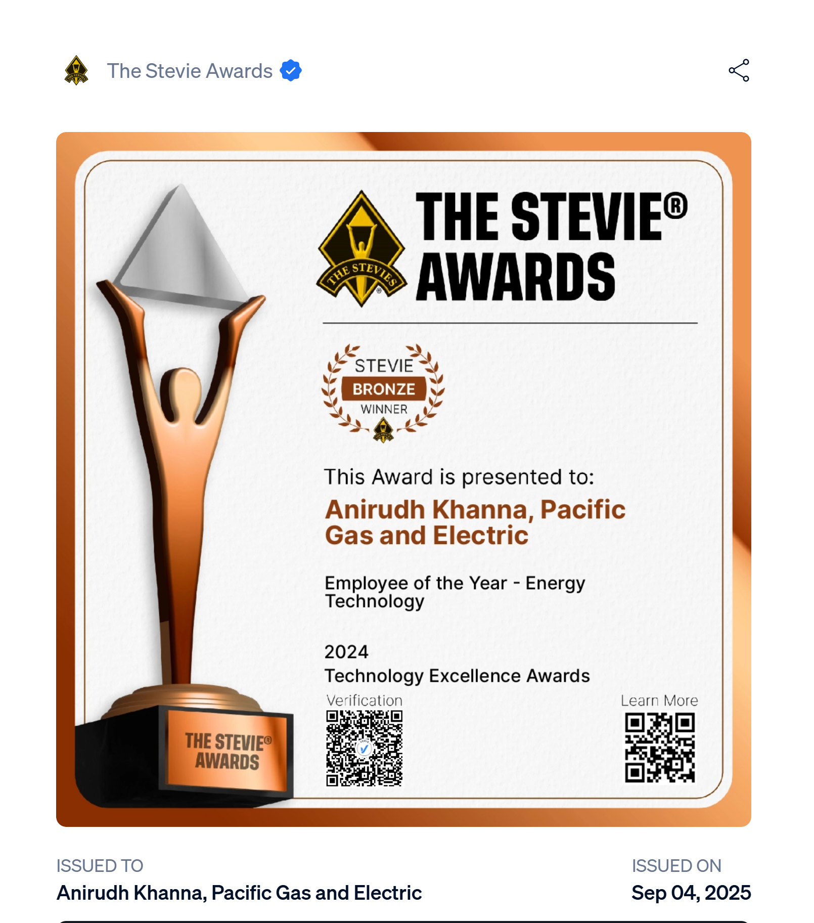 Stevie Bronze Winner – Employee of the Year: Energy Technology (2024 Technology Excellence Awards)