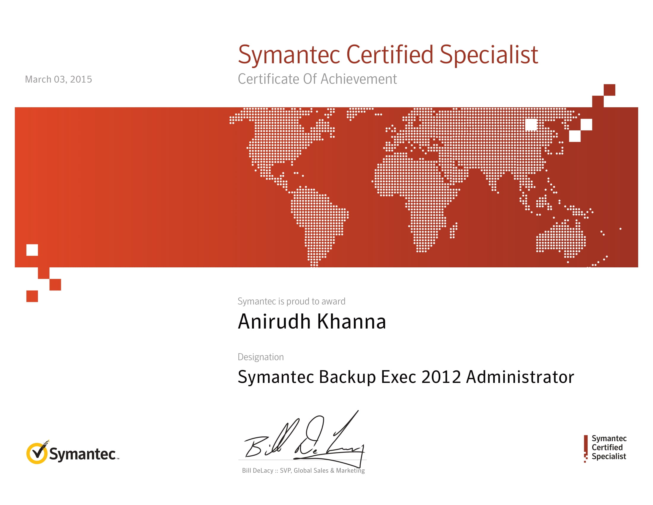 - Symantec Certified Specialist in Symantec NetBackup 7.5 for Windows Administrator